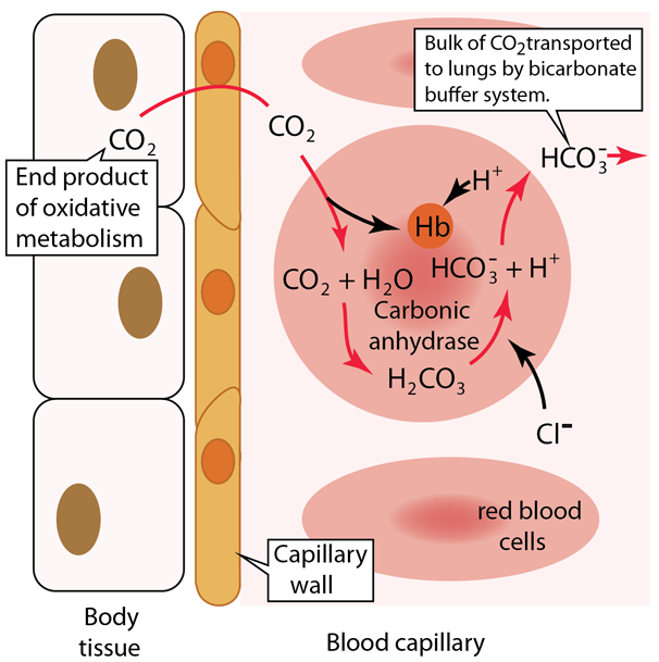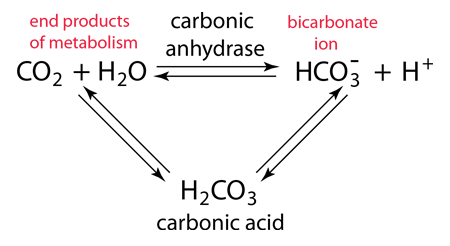 Carbonic AnhydraseCarbonic anhydrase is an important enzyme which enables the human body to convert the metabolic product CO2 to carbonic acid, H2CO3, in the red blood cells for transport to the lungs. The enzyme action of carbonic anhydrase can speed the conversion of CO2 and water to the bicarbonate ion by a factor of a million. ![]() ![]() "Carbonic anhydrase also aids in the regulation of fluid and pH balance and is involved in producing essential stomach acid. The enzyme also plays a role in vision. When it is defective, fluid can build up and cause glaucoma. The enzyme is one of the fastest known, catalyzing up to one million reactions per second."(Denton)