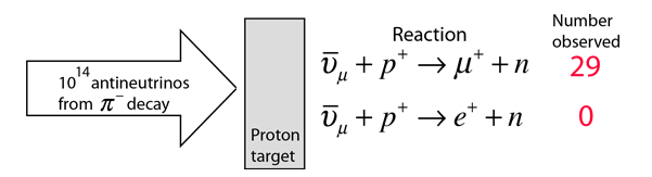 | Electron, Muon, and Tau NeutrinosThe massive leptons are the electron, muon and tau, and each of them has an associated neutrino. Most experiments involving neutrinos involve electron neutrinos which are much more common in our low-energy world, but some current neutrino detectors are sensitive to the other two as well. The current generation of neutrino detectors such as the Super-Kamiokande can detect and distinguish between electron and muon neutrinos. When a muon neutrino interacts with a nucleus, it can produce an energetic muon which travels only a short distance, emitting a sharply outlined cone of Cerenkov radiation which can be detected by photomultiplier tubes. An electron neutrino interaction can produce an energetic electron, but the Cerenkov cone from this interaction differs significantly from that of the muon. The electron generates a shower of electrons and positrons, each with its own Cerenkov cone. This smears out the circle of light which hits the detectors; the diffuse circle at the photomultipliers is the signature of the electron neutrino. Tau neutrinos are not detected by these detectors because the neutrino energies are not sufficient to produce tau particles (which are about 3500 times the mass of an electron). The first clear experimental evidence for the difference between electron and muon neutrinos came from an experiment conducted at Brookhaven in 1962. The two reactions indicated would have been equally probable if electron and muon neutrinos were the same.  Since the electron and muon neutrinos are distinct, the second reaction above violates conservation of lepton number. | Index Particle concepts Reference Kearns, et al. Griffiths Sec 1.5 | ||