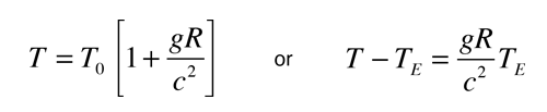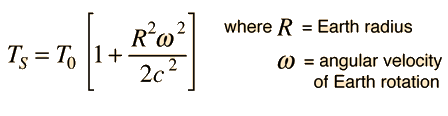Note that the "earth center" time has been replaced by the surface time in this expression. This is a valid approximation in this case since the time difference is many orders of magnitude smaller than the time itself, and this allows us to model the difference between two measurable times. |
