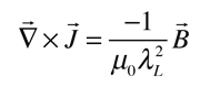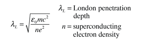 The London equation can be shown to require that the magnetic field exponentially decays to zero inside a superconductor (see Meissner effect discussion). The nature of the decay (see Chapter 12 of Kittel) depends upon the superconducting electron density n: ![]()