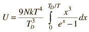 For the high temperature case where T>>TD, the value of x is very small throughtout the range of the integral. This justifies using the approximation to the exponential from the exponential series,