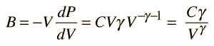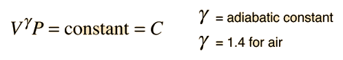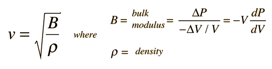 Sound Speed in an Ideal GasThe speed of sound for a uniform medium is determined by its elastic property (bulk modulus) and its density ![]() When a sound travels through an ideal gas, the rapid compressions and expansions associated with the longitudinal wave can reasonably be expected to be adiabatic and therefore the pressure and volume obey the relationship ![]() The adiabatic assumption for sound waves just means that the compressions associated with the sound wave happen so quickly that there is no opportunity for heat transfer in or out of the volume of air. The bulk modulus can therefore be reformulated by making use of the adiabatic condition in the form ![]() so that the derivative of pressure P with respect to volume V can be taken. ![]() Since the gas density is ![]() the speed of sound can be expressed as ![]() Using the ideal gas law PV = nRT leads to