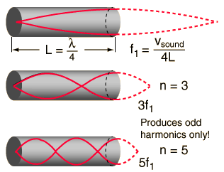 A closed cylindrical air column will produce resonant standing waves at a fundamental frequency and at odd harmonics. The closed end is constrained to be a node of the wave and the open end is of course an antinode. This makes the fundamental mode such that the wavelength is four times the length of the air column. The